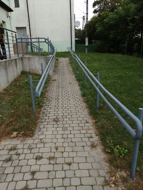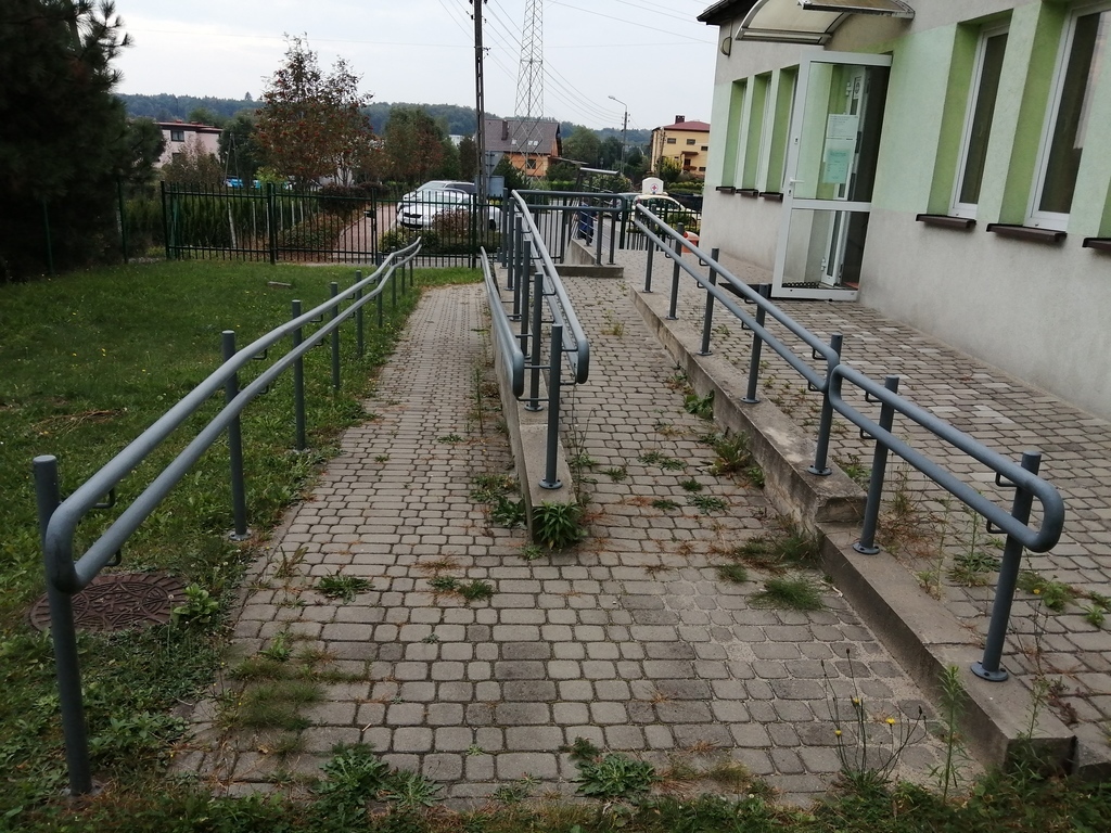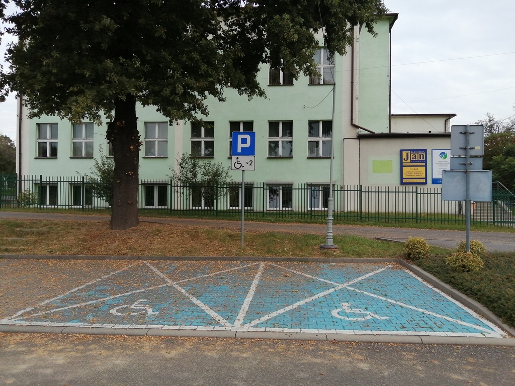Przed budynkiem, przy łączniku drogowym pomiędzy ulicą Nową a ul. Prostą znajduje się parking dla osób przyjmowanych, na którym są 2 wyodrębnione miejsca parkingowe dla osób niepełnosprawnych.